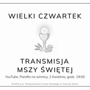 Msza św. Krzyżma w katedrze gorzowskiej o godz.: 10.00 Msza św. Wieczerzy Pańskiej w naszym kościele o godz.: 19.00. Adoracja w Ciemnicy do godz.: 22.00.