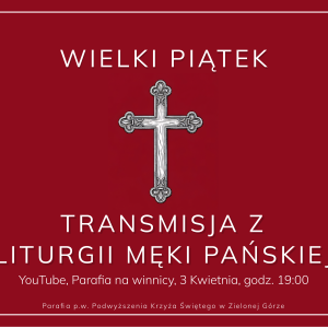 7.00 Ciemna Jutrznia 15.00 Koronka do Bożego Miłosierdzia i Droga Krzyżowa ulicami parafii. 19.00 Liturgia Wielkiego Piątku. spowiedź do 24.00 i adoracja